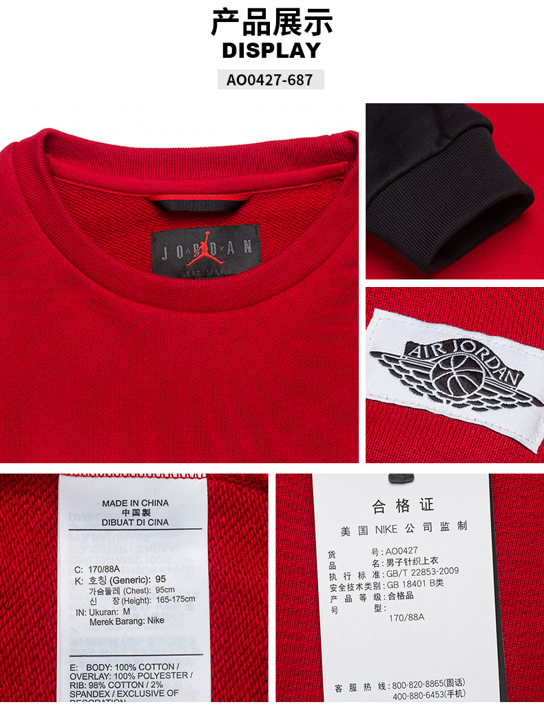名稱:2019新款男裝Jordan 休閑運動套頭衫衛(wèi)衣